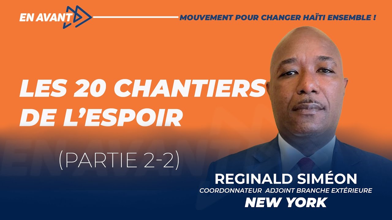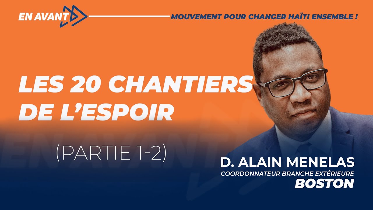 En Avant, c’est aussi et surtout une ambition de sérieux ! C’est pour cela que nous partageons avec la société haïtienne notre vision pour Haïti sur les 30 prochaines années (nous fêterons nos 250 ans d’indépendance en 2054) à travers un livre blanc qui décrit les actions que nous comptons mener lorsque nous serons au timon des affaires. Ce livre blanc est un outil pratique pour celles et ceux qui veulent être informés de notre ambition pour Haïti. Il présente un synopsis d’État des lieux et des vingt (20) grands chantiers que nous comptons lancer pour redresser la barque nationale.